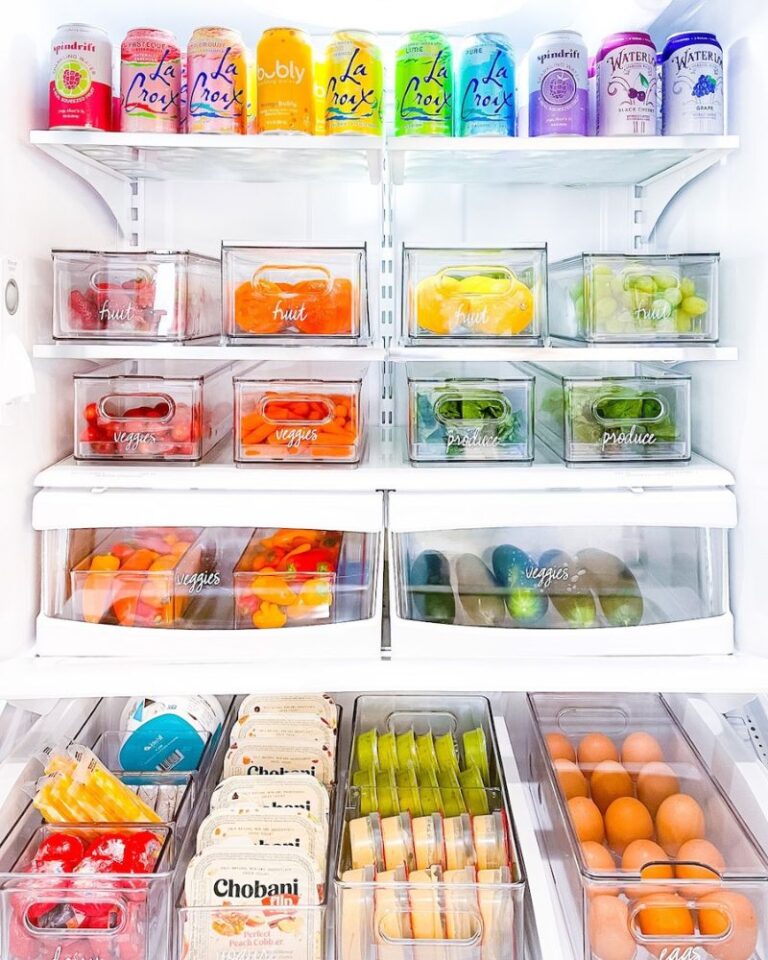 Fruits, deli meats, and those random cheese sticks always seem to multiply overnight. Use small drawer bins to create “zones” for these items. Pro tip: check the dollar store first. You don’t need to spend a fortune to get your snacks under control.