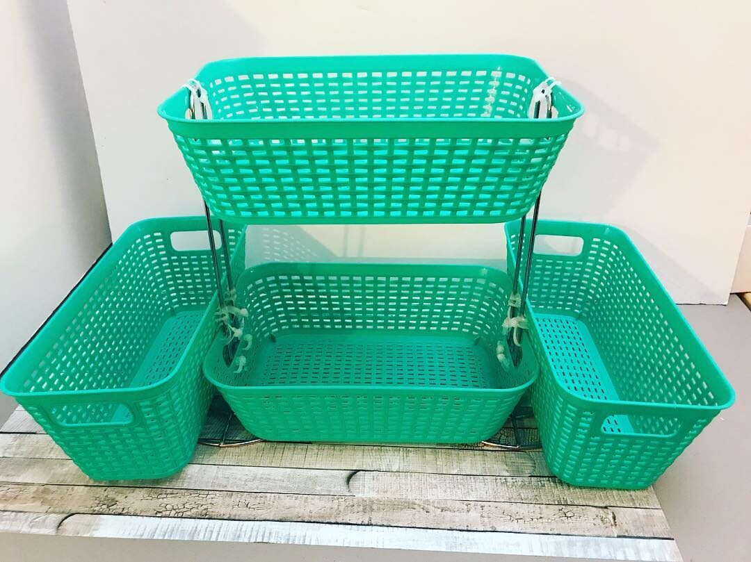 Vertical space is your best friend. Take three different-sized baking pans, drill holes in the corners, and connect them with metal chains. Hang this “tower of power” from the ceiling or a sturdy hook to store fruit, garlic, or even small potted herbs.
