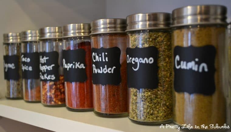 Uniformity is the secret sauce of organization. Transfer your spices into matching jars and use chalkboard labels. They look classy, and since you use an erasable chalk marker, you can swap “Oregano” for “Everything Bagel Seasoning” whenever your tastes change.