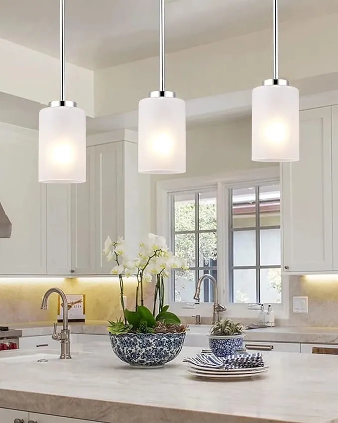 Frosted glass is the ultimate solution for soft, ambient lighting. It diffuses the light beautifully, eliminating any harsh glare from the bulb. This creates a serene and calming atmosphere, perfect for a kitchen that doubles as a social hub. Ever squinted at a bare bulb and wished for a dimmer? Frosted glass gives you that soft-focus look all the time. The soft frosted glow from these Glass Pendant Lights Over Kitchen Island is ideal for creating a relaxing vibe.