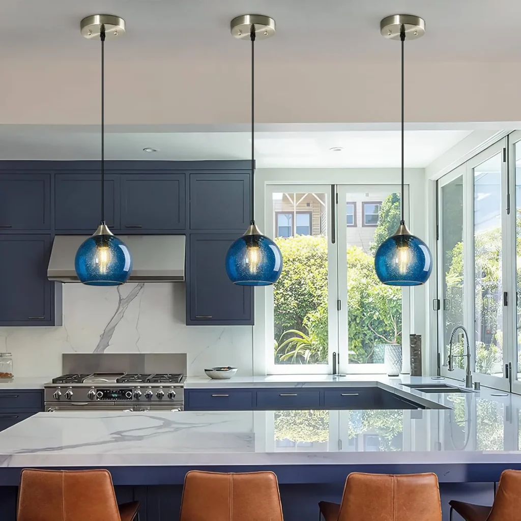Green is having a major moment in interior design, and for good reason. It’s calming, grounding, and connects us to nature. A green glass pendant can be a subtle nod to the trend or a bold statement piece, depending on the shade you choose. From a soft sage to a deep emerald, there’s a green for every kitchen. The earthy green Glass Pendant Lights Over Kitchen Island can add a refreshing and organic touch to your space.