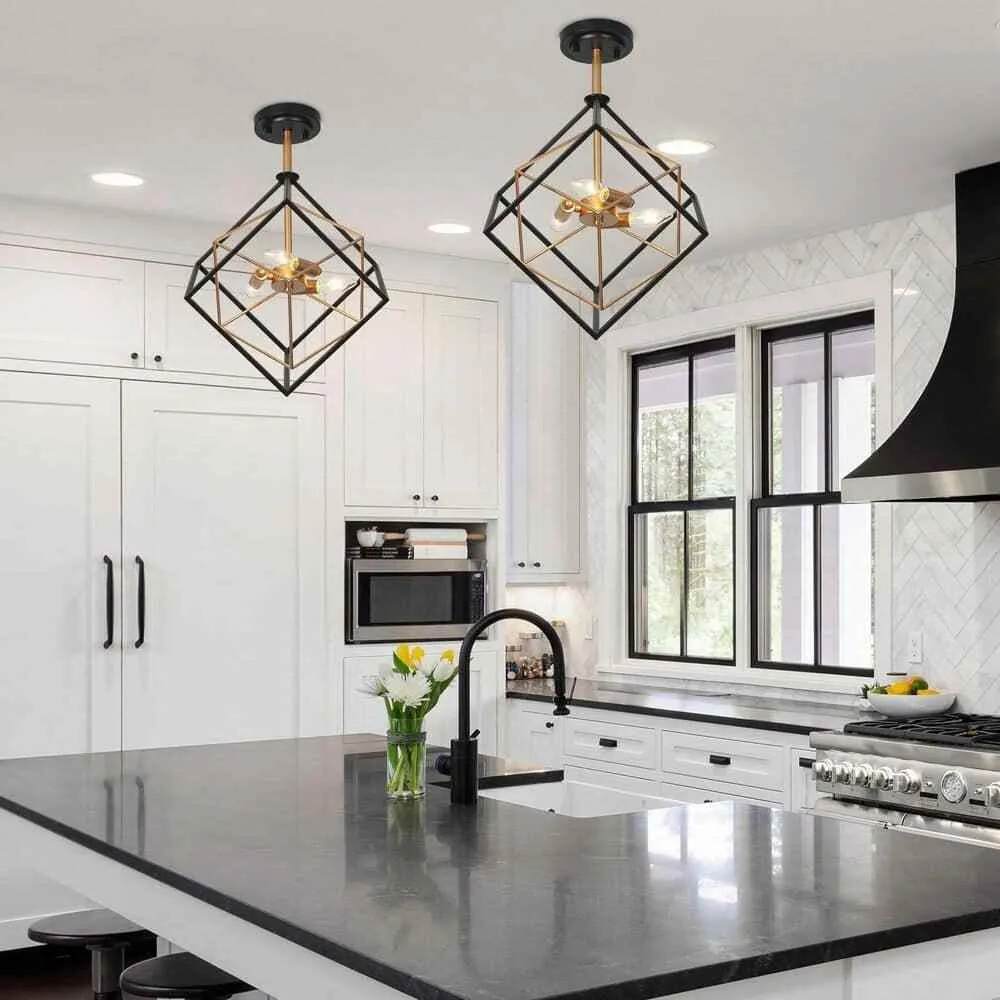 Ready to get a little edgy? Geometric pendants are like sculpture for your ceiling. With shapes ranging from cubes and pyramids to intricate polyhedrons, these fixtures add an architectural element to your kitchen. I’ve seen some incredible kitchens where the sharp angles of the lights contrast beautifully with the soft curves of the cabinetry. These modern geometric Glass Pendant Lights Over Kitchen Island are perfect for anyone wanting to add a bit of unexpected flair.
