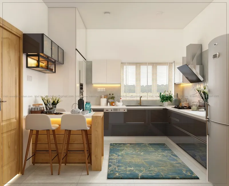 An L-shaped kitchen layout optimizes workflow while providing ample counter space. It’s perfect for those who love to cook and entertain simultaneously.