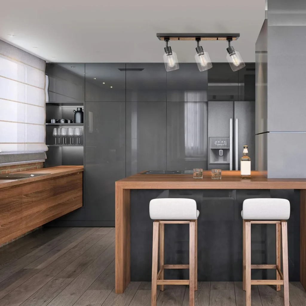 Adjustable track lighting allows you to direct light where it’s needed most, making it ideal for task-oriented areas like countertops or islands.