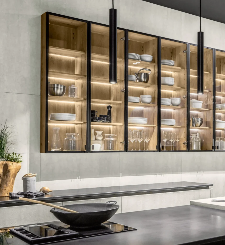 Integrating lighting within cabinets enhances visibility while showcasing beautiful dishware or decor items.