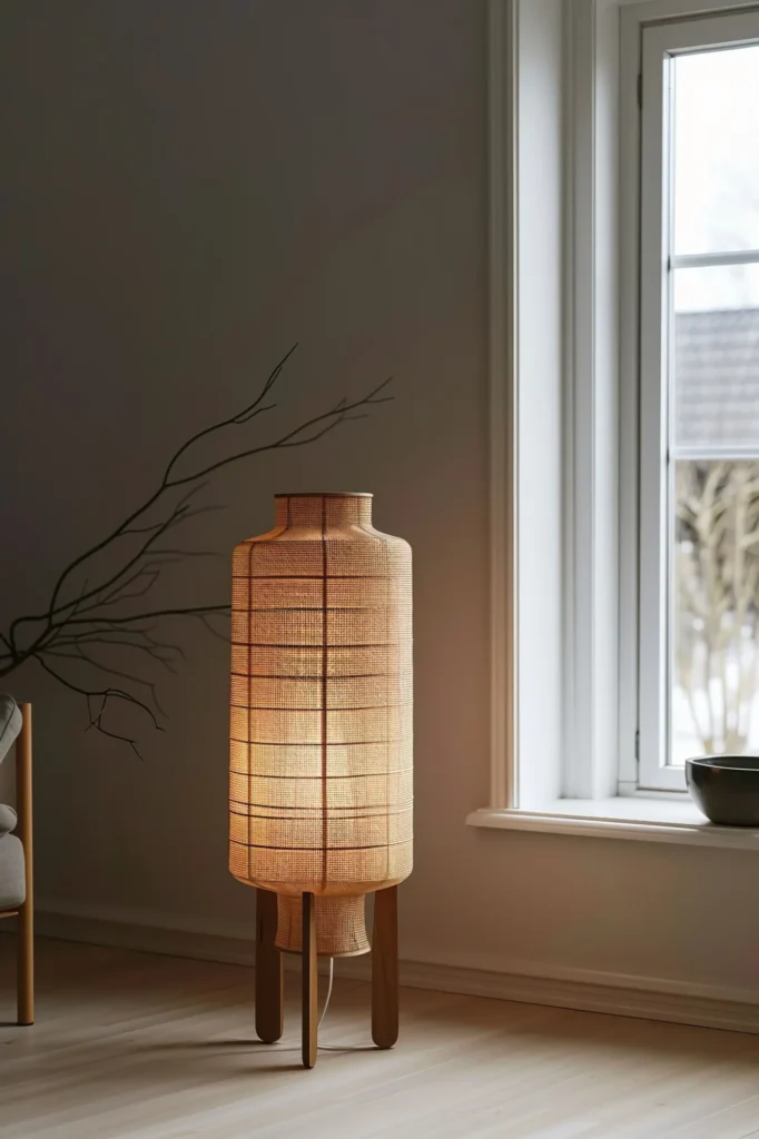 A statement floor lamp can serve as both a light source and a decorative piece in your kitchen. Choose designs that feature clean lines and natural materials to align with the Japandi aesthetic.