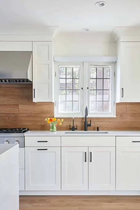Who says a backsplash has to be tile? If you are going for that cozy, modern farmhouse vibe, wood paneling is a fantastic, budget-friendly option.