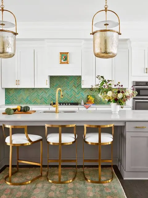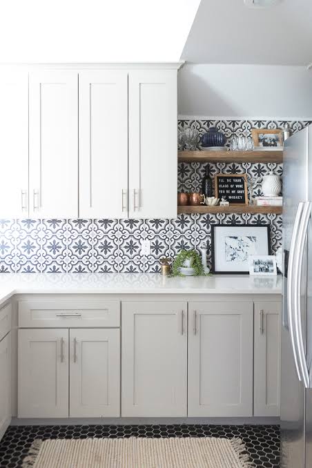 White cabinets act as a blank canvas, allowing you to get really loud with the pattern without overwhelming the space. Look for bold geometric shapes or intricate Mediterranean patterns.