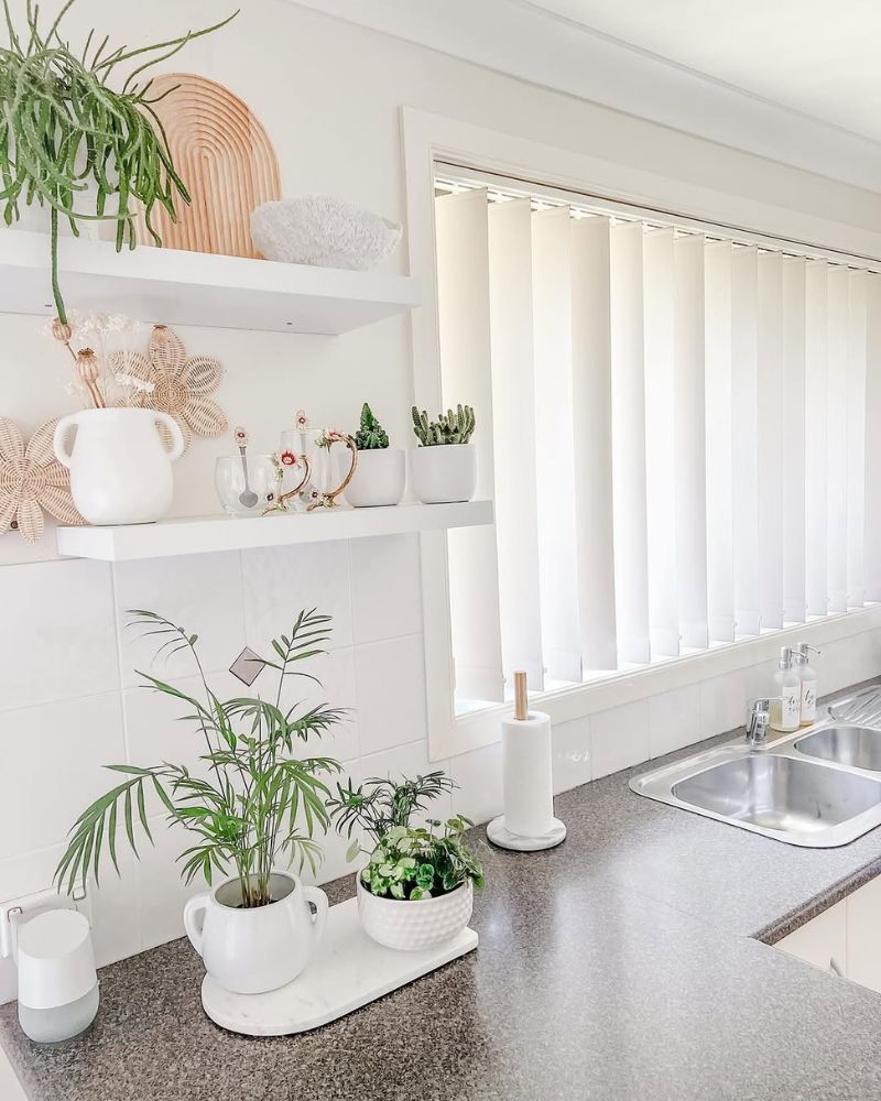 Why buy wilted basil at the store when you can grow it on your wall? Use your shelves to hold a row of small potted herbs near a window. It brings literal life into the kitchen, smells amazing, and makes you feel like a pro chef when you snip fresh mint for your tea.