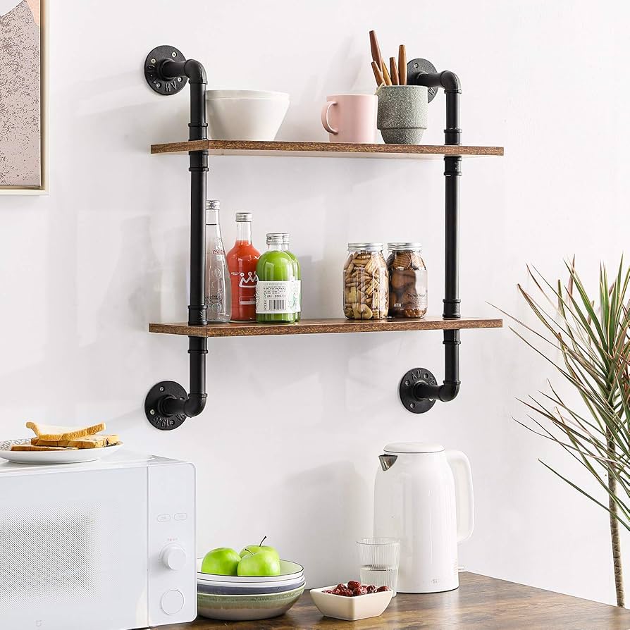 I’m a total sucker for brass. Pairing a thin, delicate wood shelf with shimmering gold-toned brackets feels incredibly chic. These aren’t for your heavy cast-iron pans—keep them light. Think dainty espresso cups, tiny vases, or a few air plants. It’s jewelry for your walls. 🙂