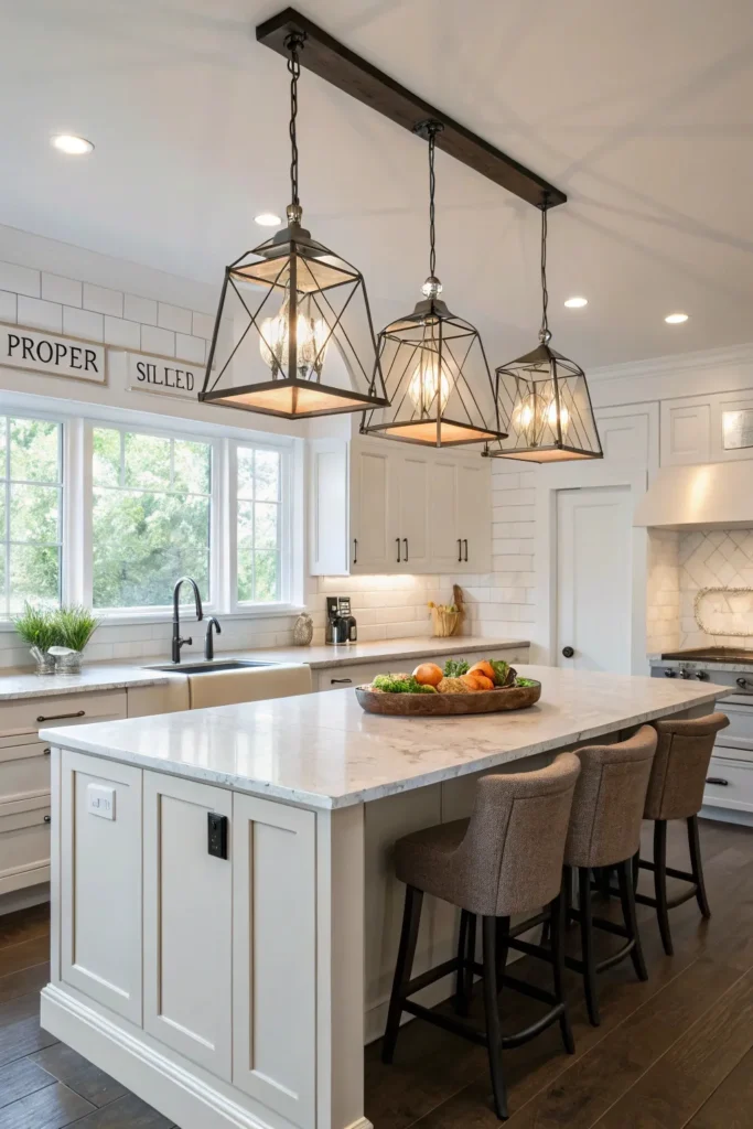 - For three pendants, size shades so each lands 10–12 inches of diameter for an 8–9 foot island.