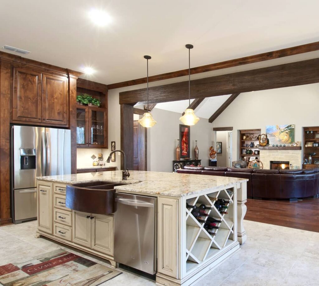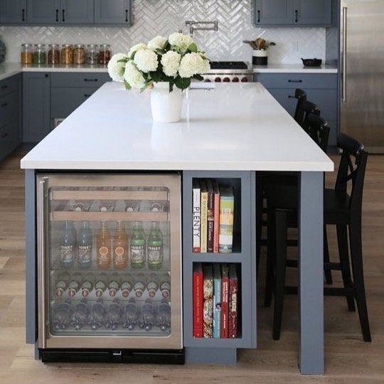 If you love hosting (or just really enjoy a cold soda), build a small fridge into the island. It keeps the “party crowd” out of your main cooking zone and makes your kitchen feel like a boutique hotel.