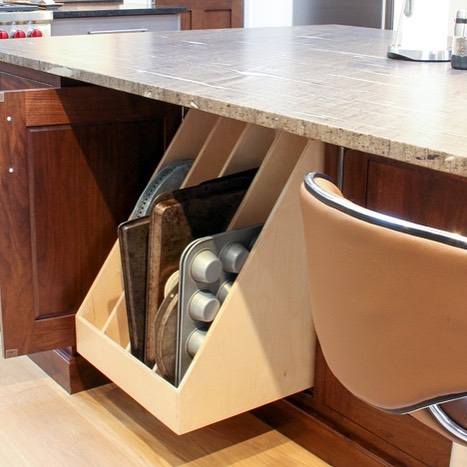 Baking sheets are the worst to stack. A vertical pull-out organizer keeps your muffin tins and cookie sheets standing upright. No more “clanging” every time you want to bake brownies.