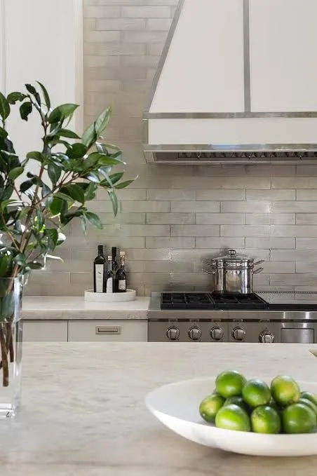 Go for a creamy white or soft gray Zellige backsplash. The texture does all the talking here. When you pair this rustic texture with unlacquered brass hardware, the kitchen feels established and organic. It looks like it’s been there for 50 years, in the best way possible.