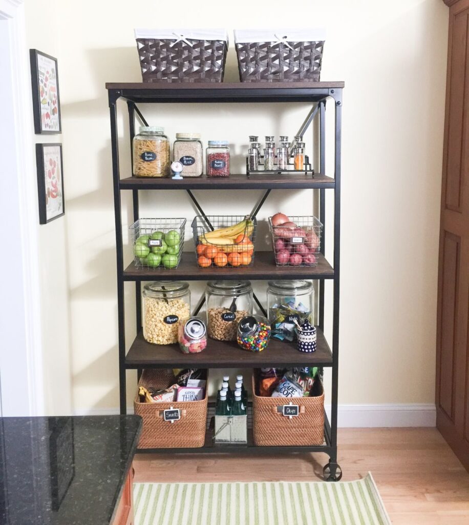 No pantry? No problem. Use open shelving or a slim wall unit to create a dedicated zone for dry goods. It’s basically a grocery store aisle in your own home.
