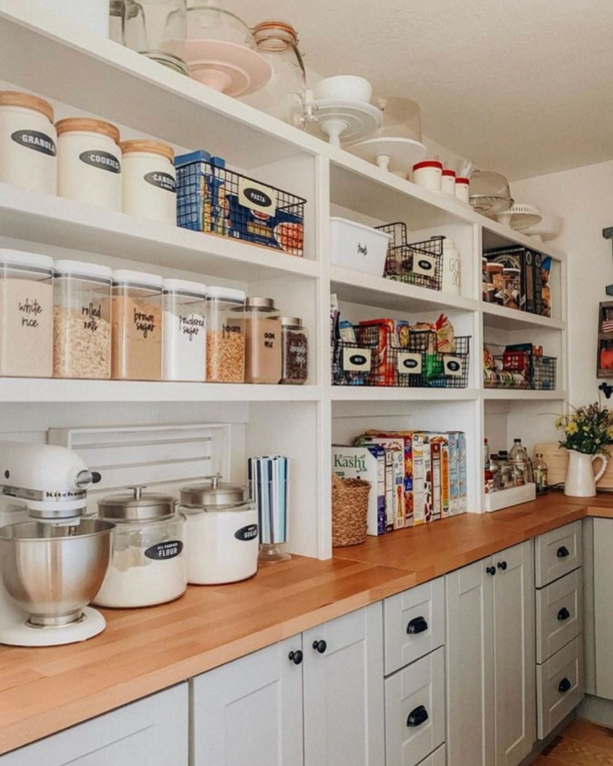 If you have a walk-in pantry, take the doors off. It forces you to stay organized (scary, I know) and makes finding the hidden snacks way easier. Plus, it looks like a boutique grocery store.