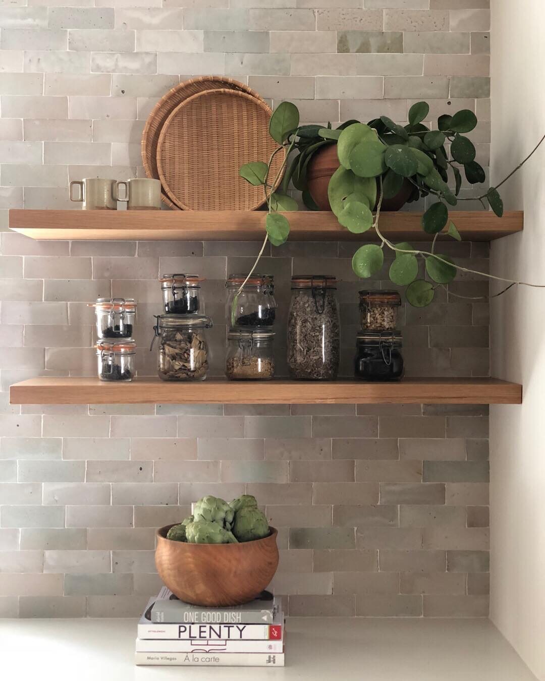 Stop digging through a dark cabinet for the paprika. Use your open shelves to display your most-used spices and teas in uniform jars. Pro tip: add a small succulent or a trailing plant next to them. It makes the whole setup feel way more intentional and “homey” rather than just a storage spot. 🙂