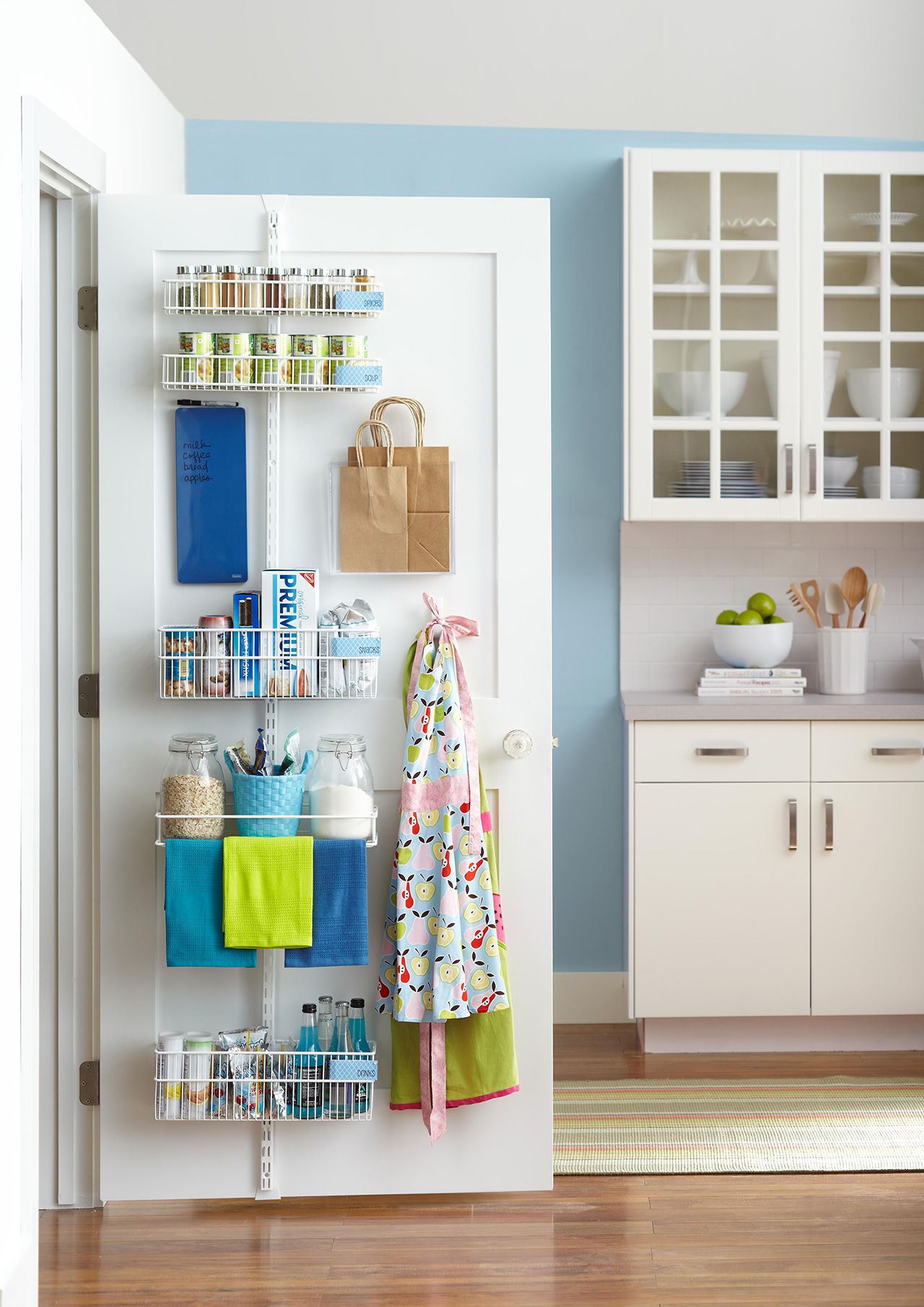 Never ignore the inside of a cabinet door. Ultra-slim door racks can hold lids, aluminum foil, or spices.