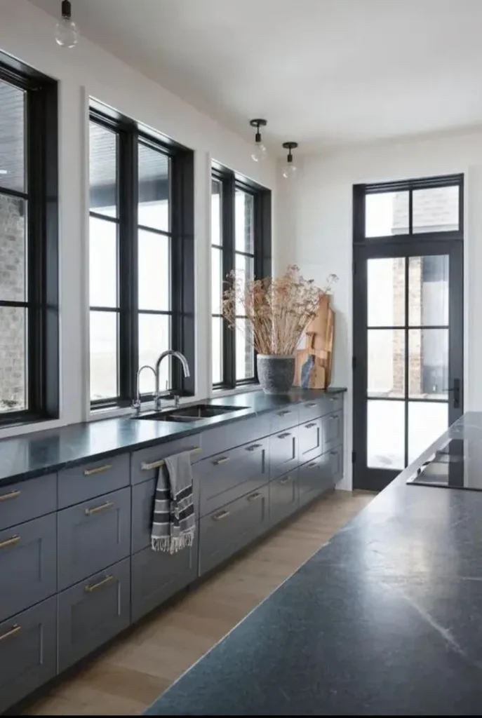 Paint your cabinets a dark, stormy gray (like BM Kendall Charcoal). Pair this with soapstone countertops. Soapstone is a natural stone that feels silky to the touch and has a matte, almost leather-like appearance. It doesn’t scream for attention like a shiny granite; it just sits there looking confident.