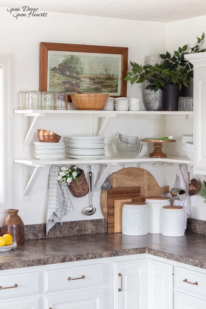 11. Open Display: Modern Organic Shelf Decor Kitchen Arrangements