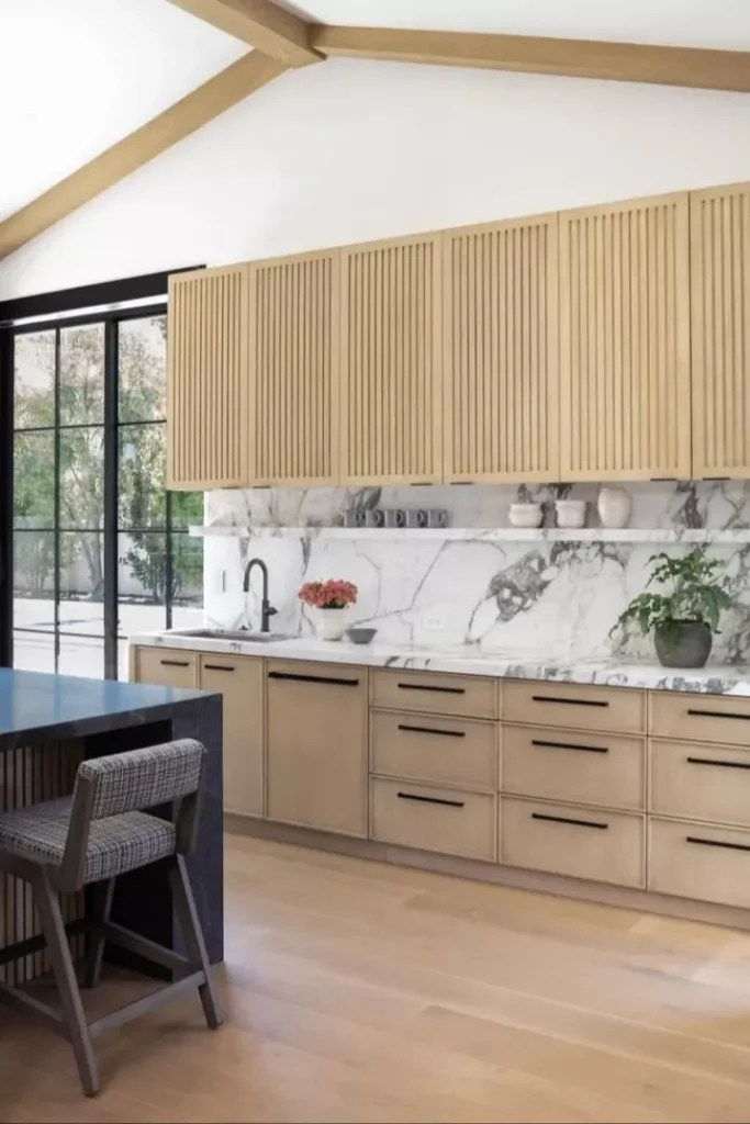 Pair those tones with modern hardware in matte black or brushed brass for a subtle, organic-meets-modern contrast that complements stone counters.