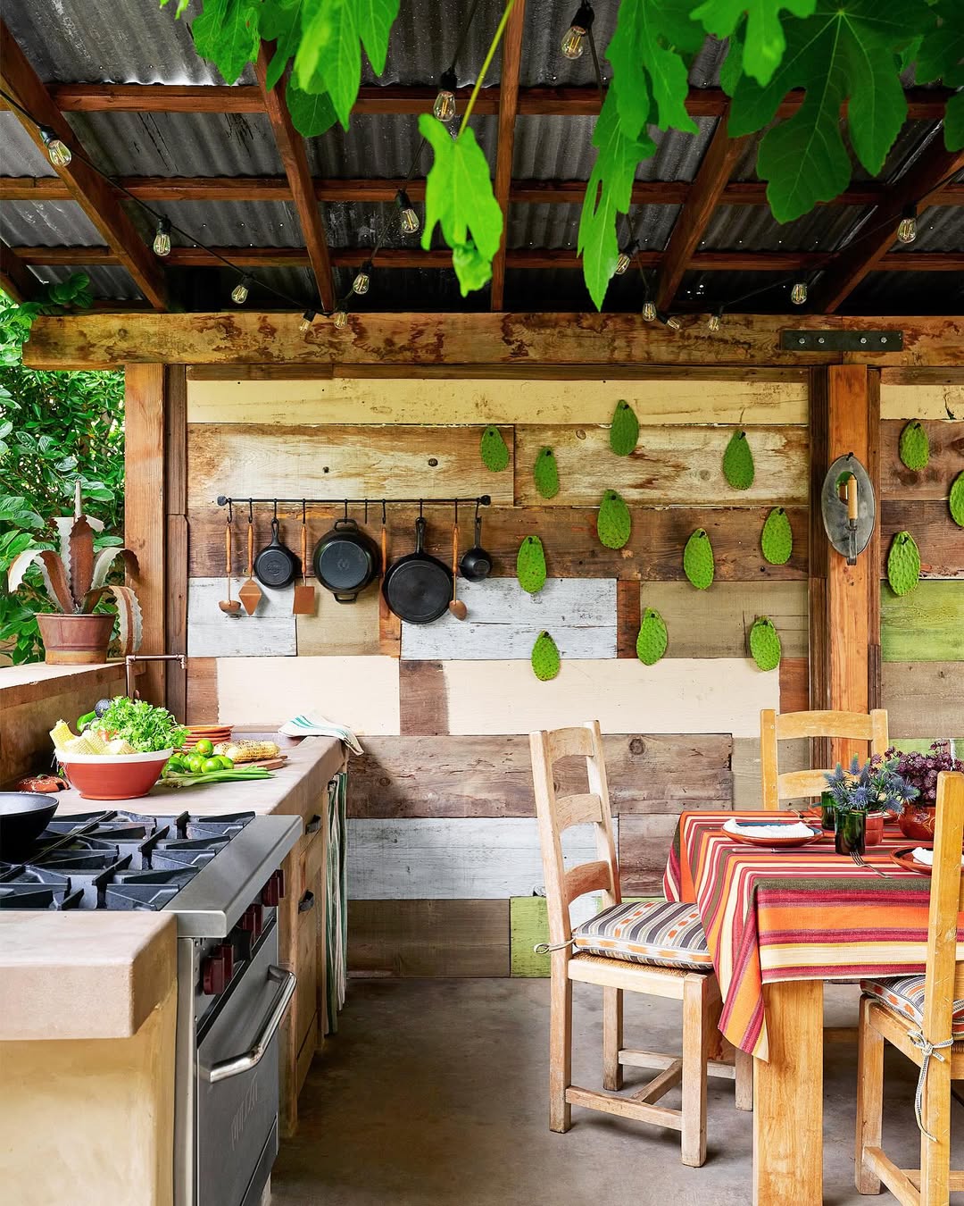 A rustic kitchen needs fresh ingredients nearby. Vertical gardening saves space and acts as a living wall to hide ugly fences or siding.