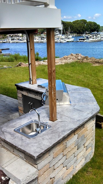 Pouring a concrete slab is one of the most expensive parts of an outdoor kitchen project. If you are on a budget, look down. Do you really need a slab?