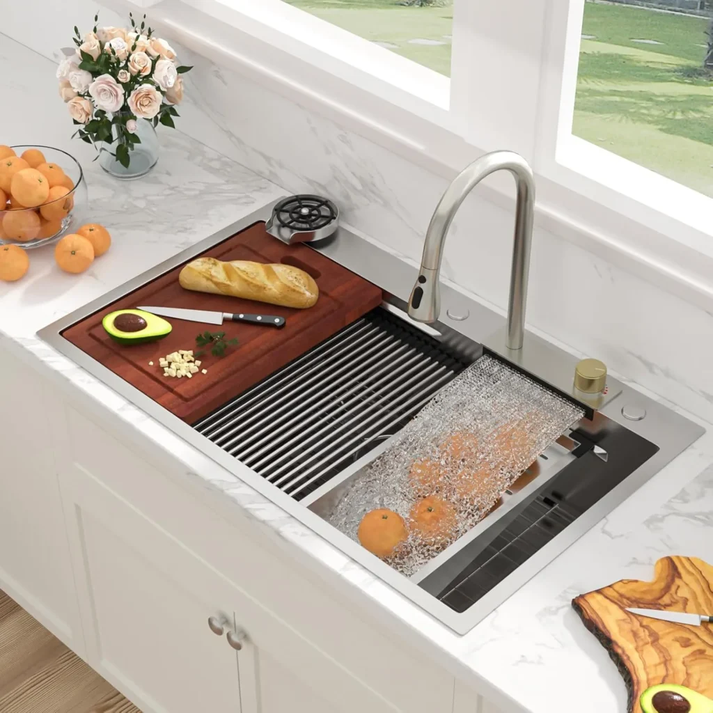 Here’s my secret weapon for a galley kitchen remodel: an oversized or multi-function sink with built-in accessories. Ever used a sink that comes with built-in cutting boards, colanders, and drying racks? Game changer!