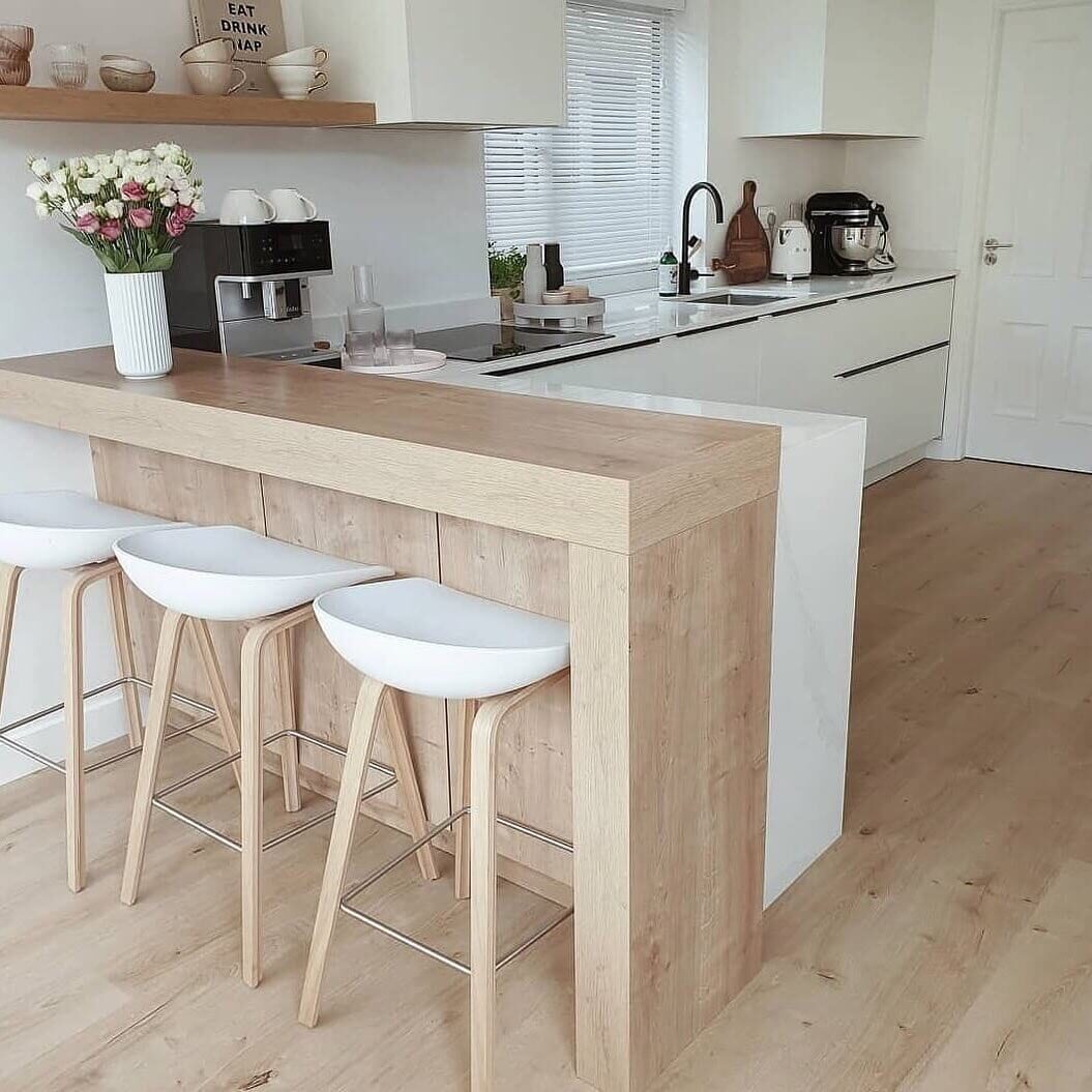 Don’t have room for a bulky island? A slim breakfast bar provides extra prep space without blocking the flow of traffic. It doubles as a desk or a spot for friends to hang out while you pretend to be a Michelin-star chef.