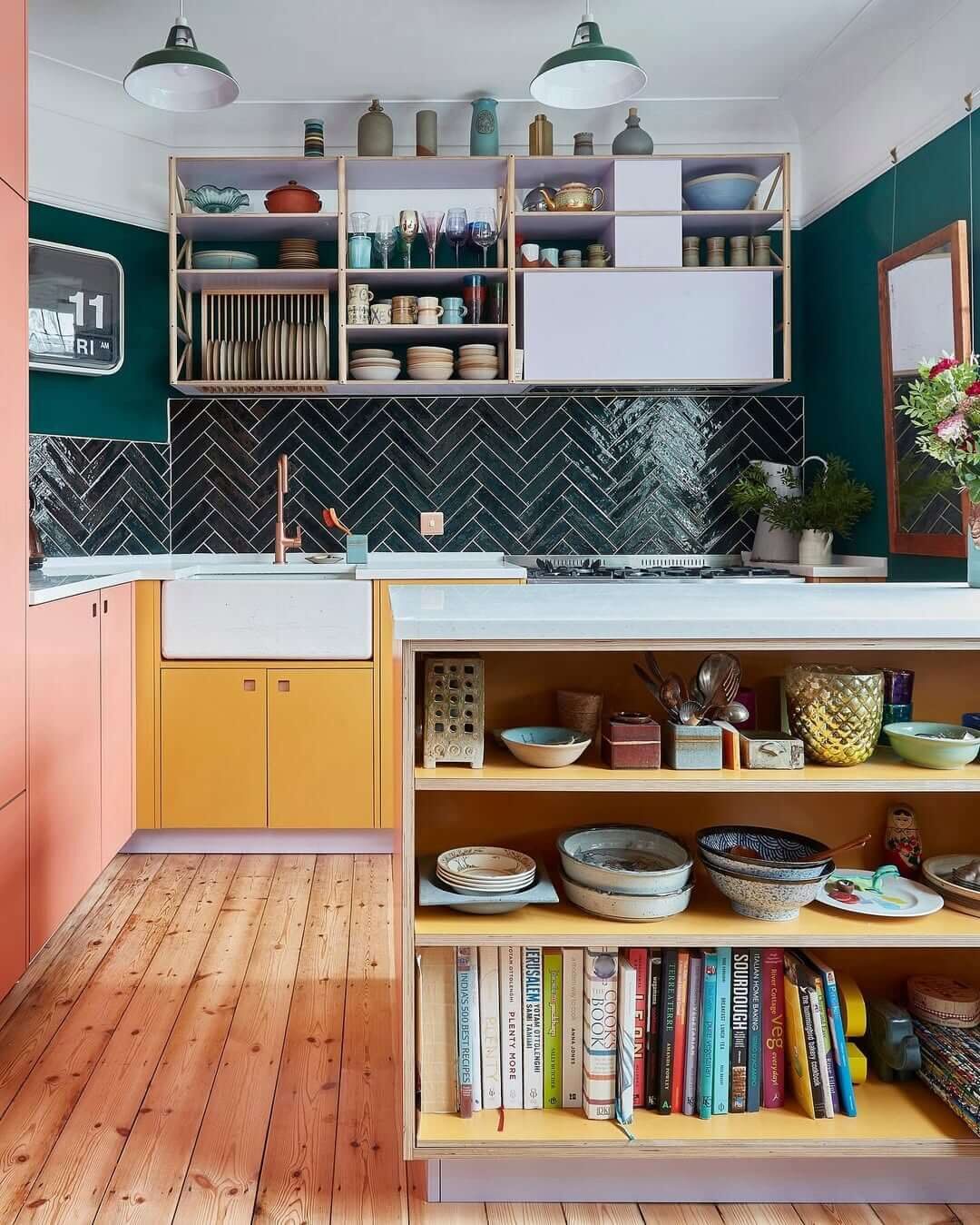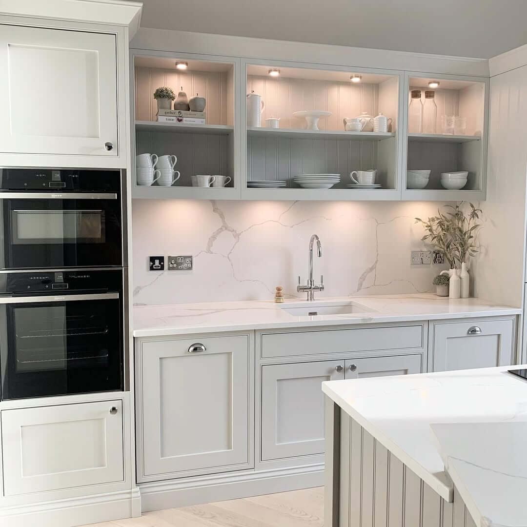 I have a love-hate relationship with open shelving. It looks airy and modern, and it’s a great way to show off your cute mugs. But, if you’re messy, it’ll look like a disaster zone. My advice? Mix a few open shelves with closed cabinets to get the look without the stress.