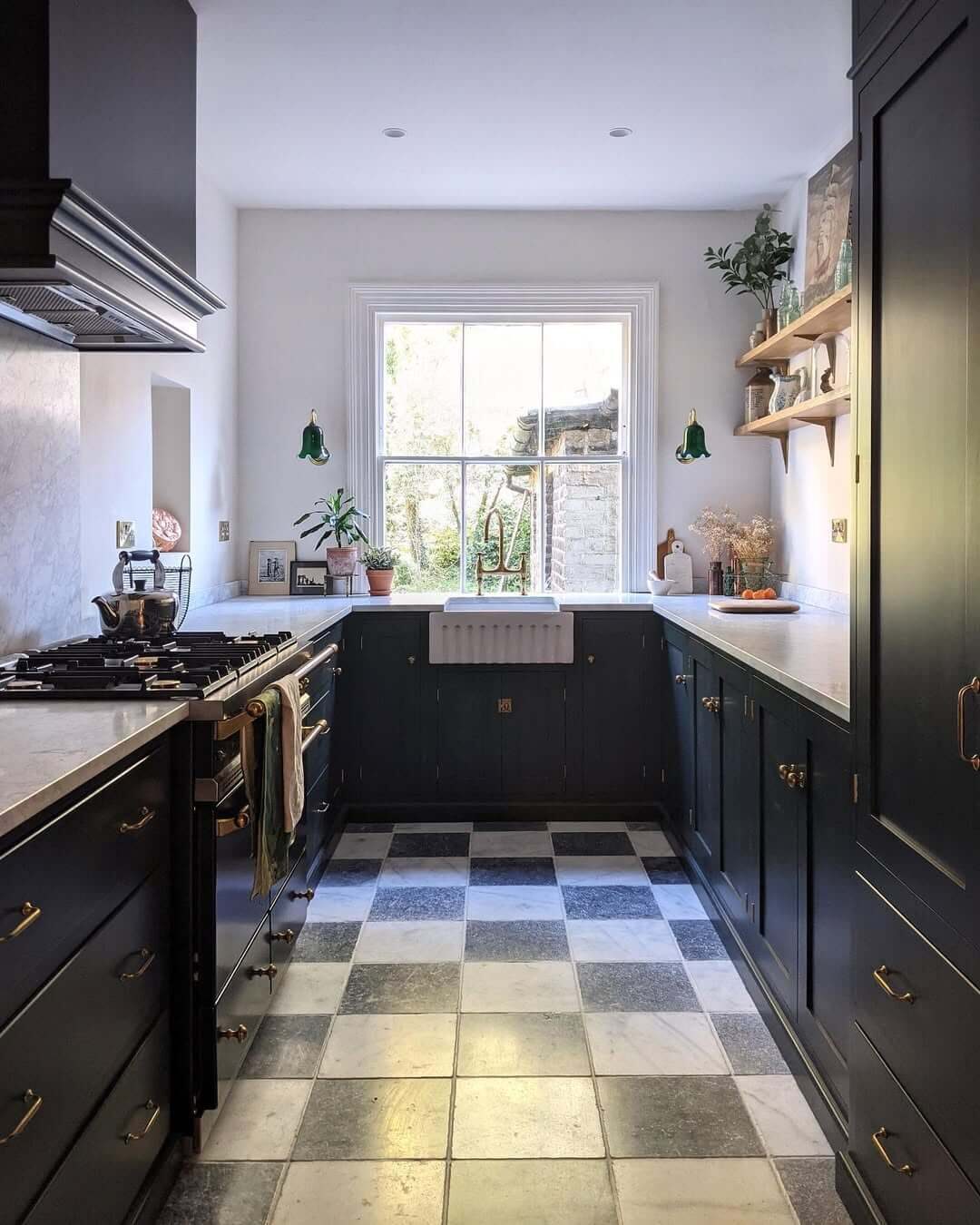 Since you don’t have much wall or floor space, use what you have to make a statement. Herringbone patterns or geometric tiles add huge personality without taking up an inch of physical room. It’s like jewelry for your kitchen.