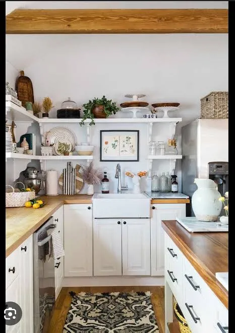 3. Open Shelving to Breathe Life Into Small U Shaped Kitchens