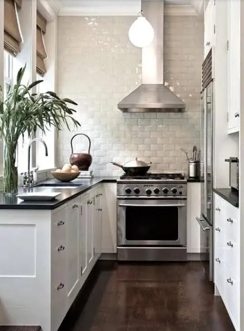 Small kitchens can scream “claustrophobic” if you’re not careful. So go for light, airy hues—think whites, soft grays, or gentle pastels.