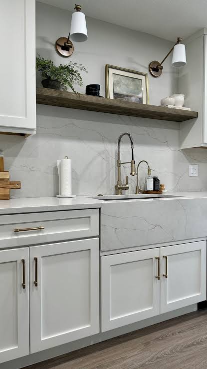 Quick Tip: Pair veined white quartz with gold or brass hardware. The warmth of the metal pulls out the subtle tones in the stone perfectly. 🙂